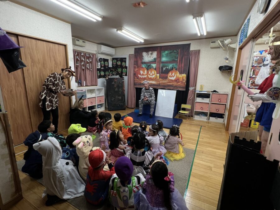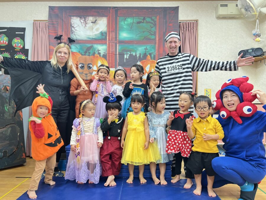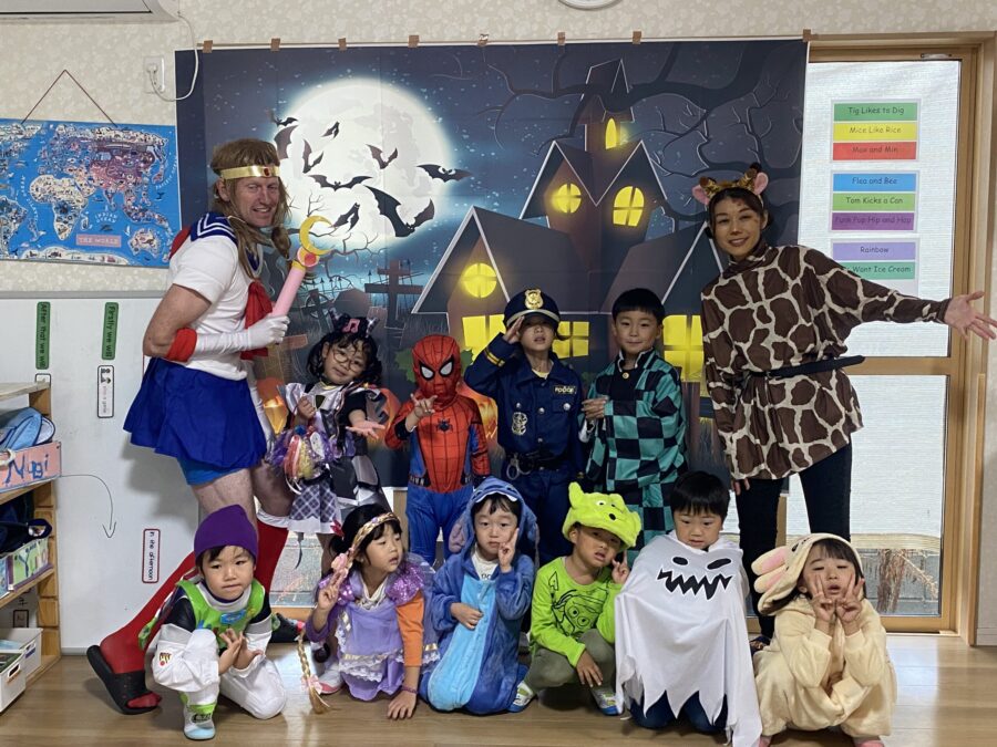 10月末になると、急に涼しくなり秋らしくなってきました。秋について聞くと、口をそろえて「Halloweenがあるよ!」と嬉しそうに答えます。2学期に入ってからずっと楽しみにしていて、衣装の話題で盛り上がりました。当日はお気に入りの衣装を着て、ニコニコ笑顔。1年で1番のビッグイベントの月ですね。