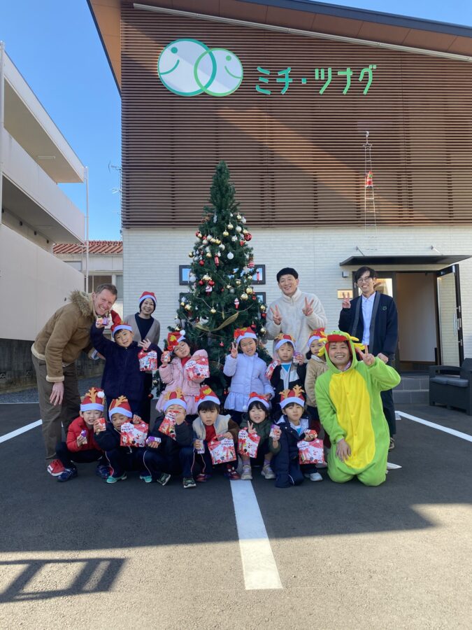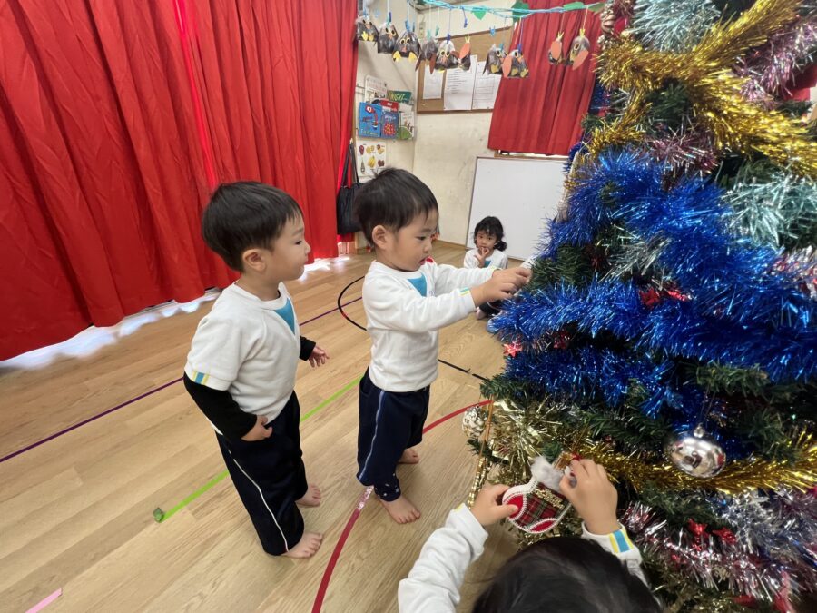 12月に入り、バイリンガルクラスはクリスマスツリーの飾り付けをしました。Ornament shopの先生からツリーの飾りを買って、思い思いに飾り付けてあっという間に完成!そして今年は、園の近くにある税理士法人ミチ・ツナグさんから、一緒にクリスマスツリーの飾りを付けようとご招待を受けました。子どもたちが見上げるほどの大きなツリー!!高くて手が届かない所はミチ・ツナグさんのスタッフの方に手伝ってもらいながら、たくさんのデコレーションを付けていきキラキラに輝くツリーが出来上がりました。お土産のお菓子もいただきとても嬉しそうな子どもたちです。ミチ・ツナグさん、素敵な経験をさせていただきありがとうございました。