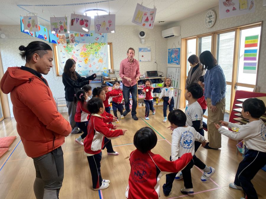 暖かかった今年の2月、子どもたちは毎日公園に行って、鬼ごっこを楽しみました。公園に着くとすぐに ”I'm hot!”と言って上着を脱ぎ、元気に走り回ります。「次はこんなルールにしようよ」と意見を出しながら、次々と発展させていくと遊びに終わりはありません。公園の時間が終わっても、「次はこうしよう」「僕、捕まらなかったよ」と帰り道でも話が盛り上がりました。